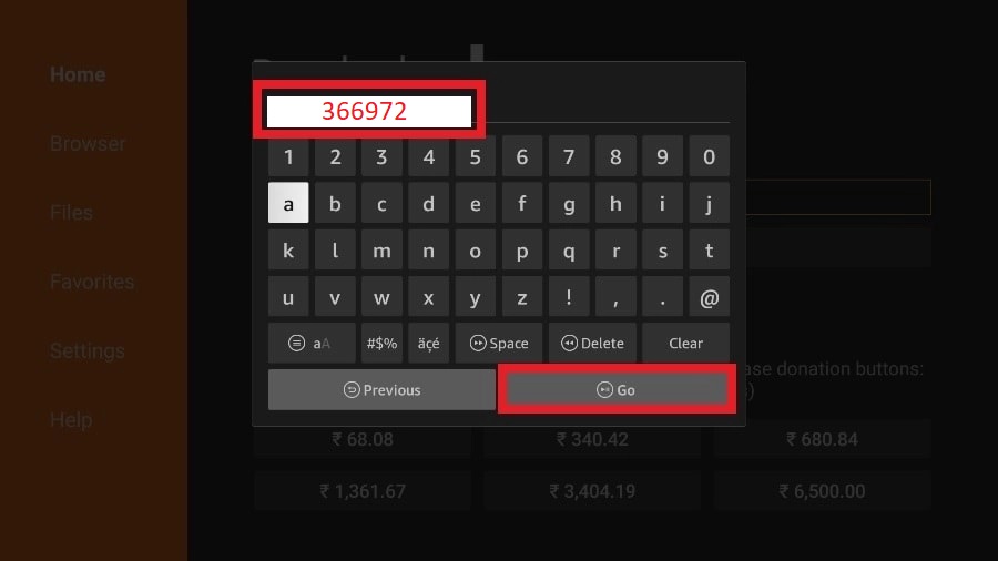 It will open a virtual keyboard. Type the code: 366972 then press Go.