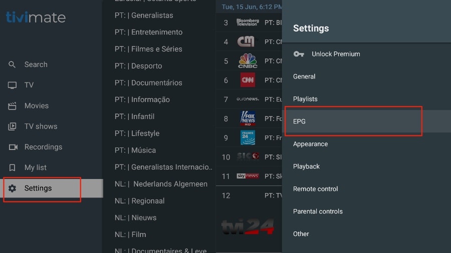 If you don’t see an EPG enabled in the TiviMate application, consider enabling it in the application settings.